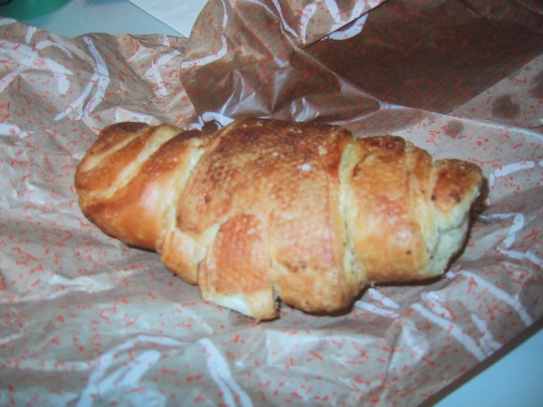 You non-Dutch speakers probably don't know what a broodje is. Well, "brood" means bread and "-je" means little, so broodje applies to all the little bready things that Dutch eat for lunch. Yes, technically this is a croissant, but it's also a broodje.